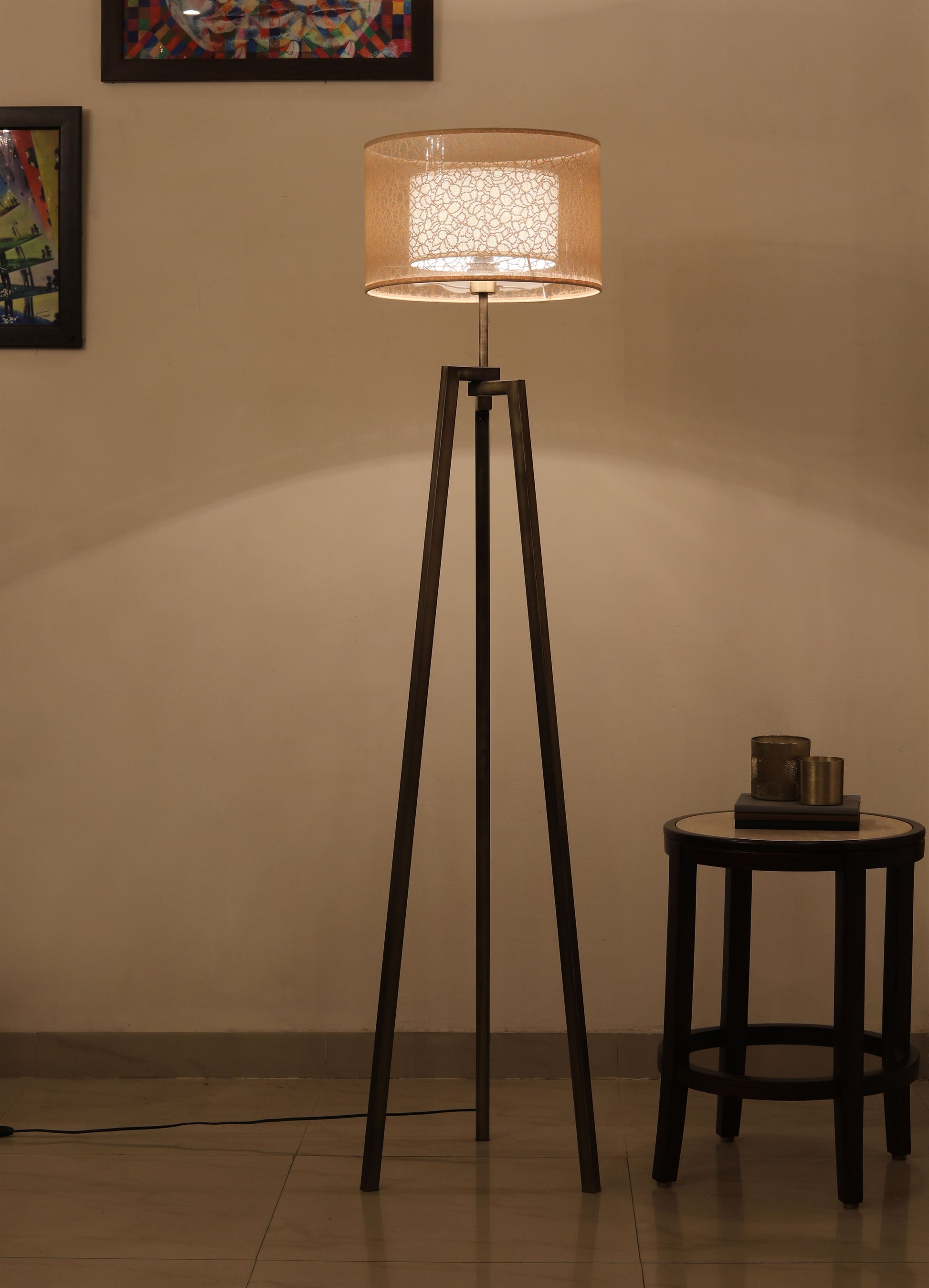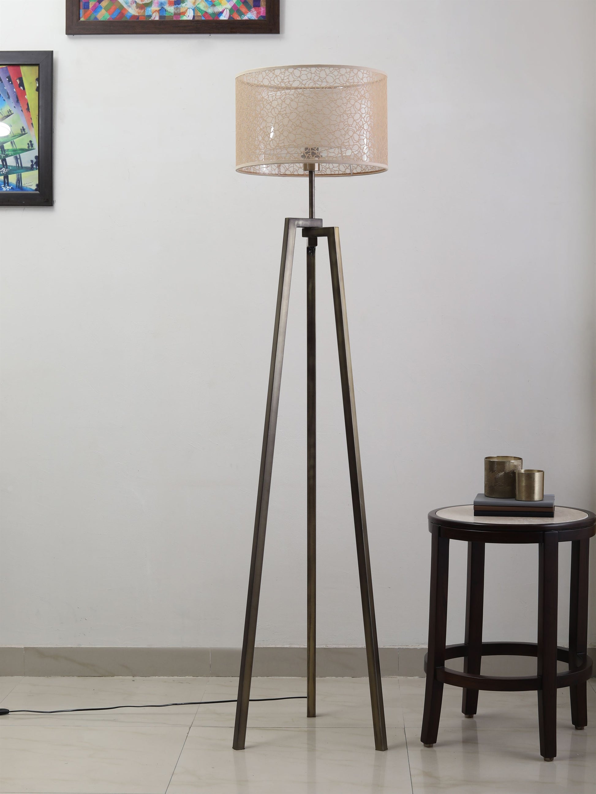 A timeless piece that creates a soft, radiant corner in your home, this floor lamp is a classic work of art . The parchment shade compliments the metallic stand that brings attention to your space while enhancing its luminescence.